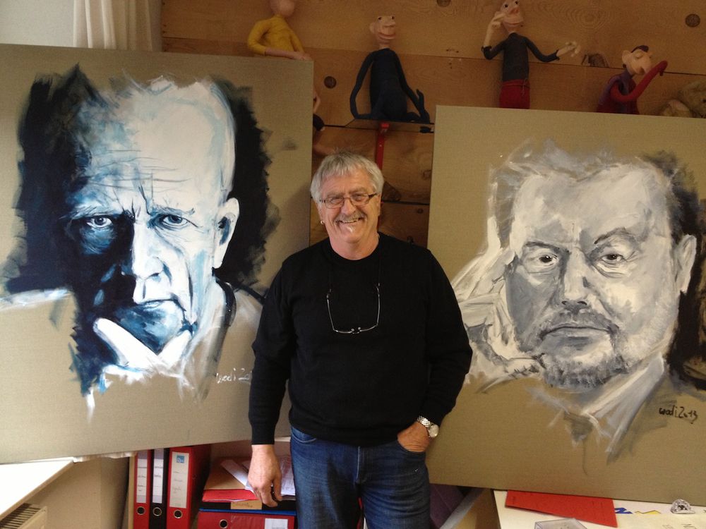 Mayener Maler Wolfgang Dillenkofer porträtiert die Köpfe der SPD in Acrylfarben
