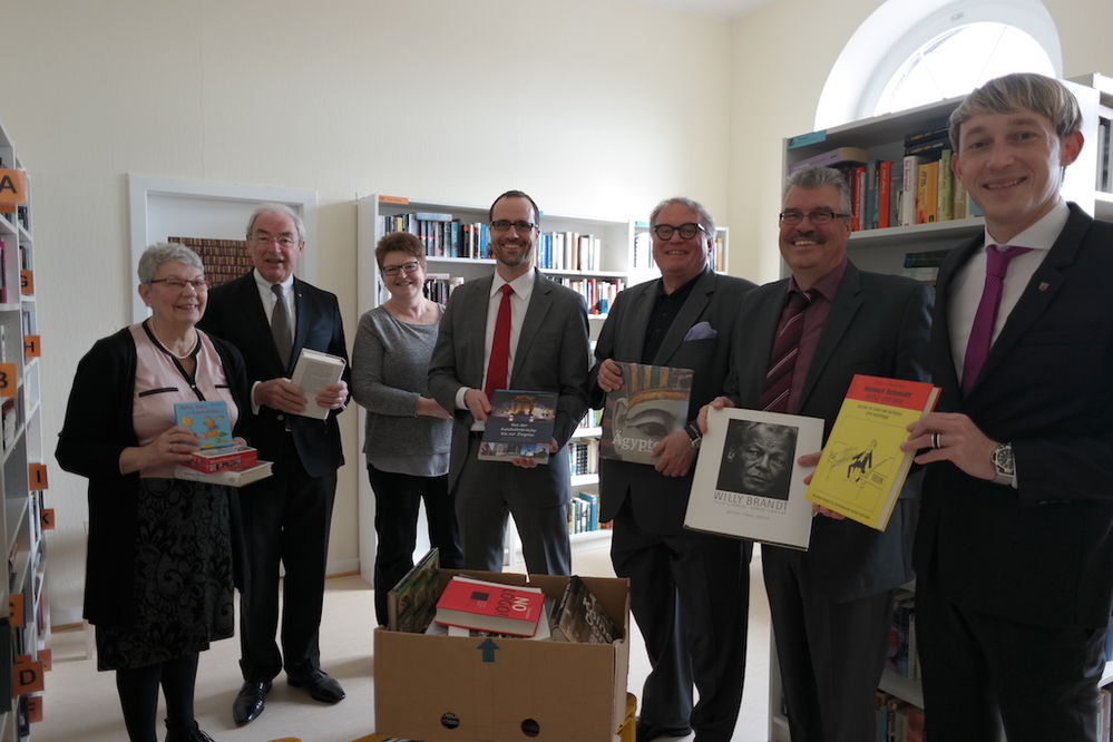 „Wenn die Stadtbücherei über 3.000 Leihbücher verfügt, werde ich ganz bestimmt wiederkommen“, mit diesen Worten hatte Kulturstaatssekretär noch im vergangenen Juli der feierlichen Eröffnung der Stadtbücherei Mendig beigewohnt. Dass er diesem Versprechen so schnell nachkommen würde, war sicherlich auch für Schumacher selbst eine kleine Überraschung. Gemeinsam mit dem Andernacher Landtagskandidaten Clemens Hoch, dem Vorsitzenden des SPD-Kreisverbandes Mayen-Koblenz, Marc Ruland, MdL, sowie Stadtbürgermeister Hans-Peter Ammel und Finanzminister a.D. Gernot Mittler war er nun zum wiederholten Male in den Räumlichkeiten der Bücherei zu Gast. Mit im Gepäck war zudem eine beträchtliche Bücherspende inklusive zahlreicher Kinder- und Jugendbücher sowie Literatur für Erwachsene.